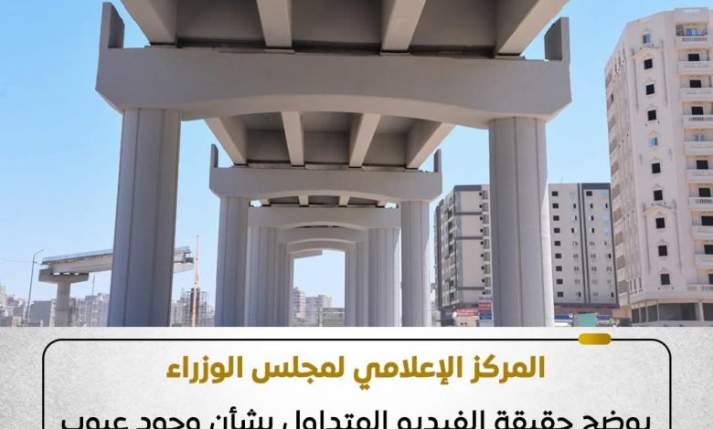 الحكومة توضح حقيقة الفيديو المتداول بشأن وجود عيوب هندسية بكوبري “45 الدولي” بالإسكندرية